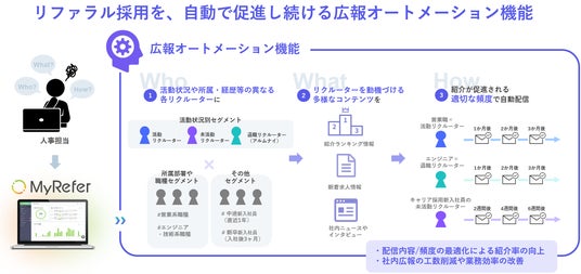 従業員一人ひとりにパーソナライズした社内広報を自動で実現する「社内広報オートメーション機能」をリファラル採用サービス「MyRefer」に実装