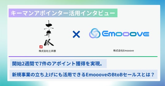 株式会社Emooove(本社:東京都渋谷区、代表取締役CEO:藤澤諒一)は、高齢者施設向けに「おふくろの味」を提供する事業を行っている株式会社土井勝におけるターゲット決裁者アポイント獲得支援サービス「キーマンアポインター」の活用事例記事を公開したことをお知らせいたします。