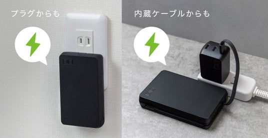 ◆内蔵ケーブルは本体への蓄電にも対応。