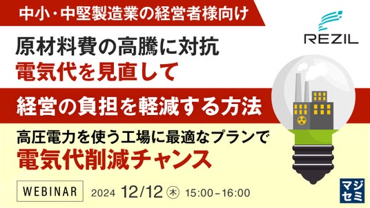 マジセミ株式会社は「【中小・中堅製造業の経営者様向け】原材料費の高騰に対抗、電気代を見直して経営の負担を軽減する方法」というテーマのウェビナーを開催します。