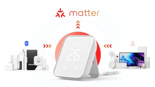 スマートリモコン売り上げNo.1獲得(2020年11月~2022年10月累計販売実績 2022年11月 家電Biz調べ)の、SwitchBotを代表する製品「ハブミニ」の上位モデルとして販売している、温湿度計、スマートボタン搭載のスマートリモコンです。赤外線家電とSwitchBot製品を連携させたり、スマホのアプリを通して遠隔操作を行なうことができます。対応可能な赤外線リモコンは8万以上。最大の特徴は、Matterに対応したスマートホームハブとして、ハブ2に連携したデバイスや家電を、HomeKitやSiriからシームレスに操作できるようになる点です。