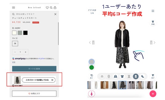 訪問されたお客様が試してみたいコーディネートをモデル画像と合わせながらいくつもビジュアルで提案できることで、購入率アップやセット購入の促進、1人あたりの平均購入金額アップなどの主要数値の改善を実現していきたいと考えております。