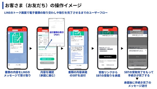 本機能は、公式 LINE のお友だち(お客さま)による LINE 上での操作で「電子書類の送付・確認」や「電子取引」を可能にすることで、日本海ガス絆 HD グループの営業担当者とお客さま間での煩雑な諸手続きのフローを簡便化し、「ユーザーの利便性向上」を実現するものです。本機能は、「NFT」の一種で、他人に譲渡ができない仕組みを持つ「SBT」を利用しています。
