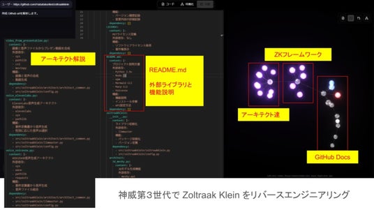 リバースエンジニアリングした情報から最大150ファイルのシステムを5分以内で全ファイル実装可能なZoltraakとの連携機能を備えています。これにより、既存システムの理解から新規実装まで、シームレスな開発体験を提供します。Zoltraakの高速・大規模コード生成能力と組み合わせることで、システム開発の大幅な効率化を実現します。