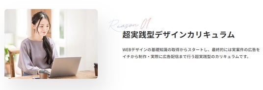 「やりたい」を「できる」に。をコンセプトに、WEBマーケティングの現場で即戦力となるWEBデザイナーを目指し、WEBデザインとマーケティングスキルを3か月で超実践的に学べるオンライン型の