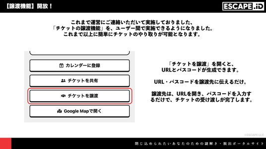 謎解き・脱出ゲーム特化のチケットポータルサイト「ESCAPE.ID」が、リリースから3ヶ月経過。「譲渡機能」などの新機能の追加から、X上でのキャンペーンなどを実施。