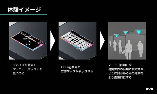 MESONが展示する「XREAL: Holomap」は、現実世界に立体的なマップやノード(目印)を表示することで、「どこに何があるのか」の理解をより直感的にします。 空間コンピューティング技術によって現実世界にデジタル情報が付与され、日常生活がより便利になる体験を楽しむことが可能です。