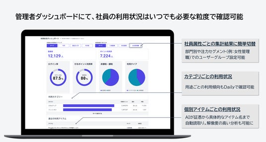 社員属性ごとの利用状況をいつでも確認可能、企業の人事戦略と連動した福利厚生の利用促進をサポート