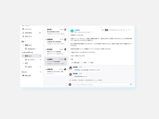 『yaritori』をご利用いただいているフロントオフィスでは、メールを中心とした社内外のコミュニケーションが多く発生します。こうした部署では、「問い合わせメールの対応方針について社内メンバーと相談する際、メール転送や口頭では手間がかかる」という悩みを抱えていることがありました。