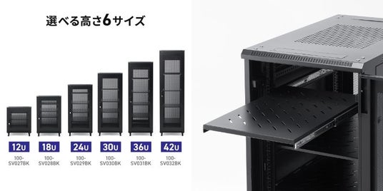 サンワサプライ株式会社(本社:岡山市北区田町1-10-1、 代表取締役社長 山田 和範)が運営している直販サイト『サンワダイレクト』では、棚板・スライド棚が標準装備されているオールインワンの19インチラック12Uから42Uまでの6種類「100-SV027-032」を発売しました。