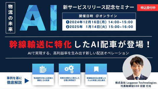ログポース、幹線輸送の配車を自動化する次世代AIを発表
