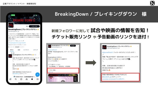 フォローしてくれたユーザーに、ブレイキングダウンの情報を送付。