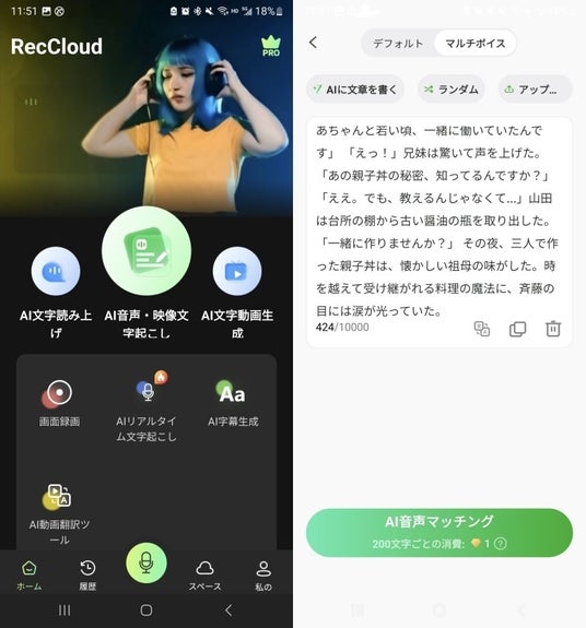 スマホ用RecCloudアプリでAIマルチボイス朗読の利用