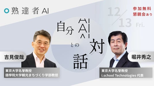 今回の対談イベントでは、現在、『熟達者AI』の熟達者として協力いただいている吉見俊哉氏をお招きし、自身のAIと対話することで見えた発見を紐解くと共に、生成AIの活用における未来について語り合いたいと思います。