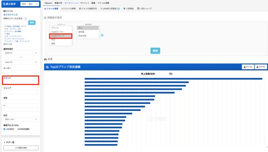- 特定商品のブランド情報表示:商品情報をブランドでフィルタリングし、分析対象をカスタマイズ可能です。