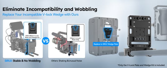 このバッテリープレートのV字型ロックブラケットは、Blackmagic URSA Miniモデルを含むほとんどのVマウントバッテリーと高い互換性を誇ります。さらに、万が一、お使いのバッテリーが互換性を持たない場合でも、元の三角形のVロックウェッジを、セットに含まれるVロックウェッジに簡単に交換することができます。