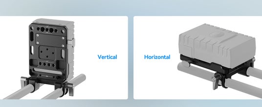 セットにはデュアル15mmロッドクランプが付属しており、バッテリープレートを標準の15mm LWSロッドに水平または垂直に取り付けることができます。この機能により、さまざまなカメラシステムに柔軟に対応でき、安定した撮影環境を提供します。