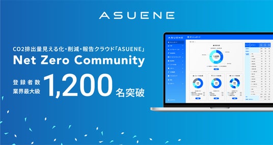 アスエネ株式会社(本社:東京都港区、代表取締役CEO:西和田 浩平、以下「当社」)は、CO2排出量見える化・削減・報告クラウドサービス「ASUENE」を導入するユーザーコミュニティ「Net Zero Community」が、ユーザー数を1,200名突破しました。