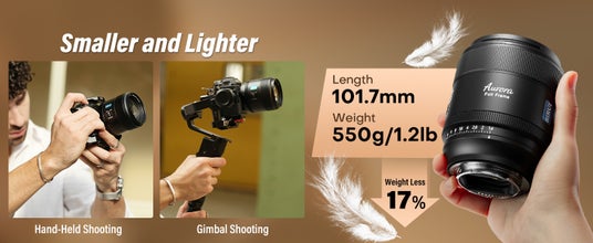 従来の高速絞りポートレートレンズと比較して、このAuroraシリーズの85mmF1.4レンズは軽量で、長時間の手持ち撮影やジンバルスタビライザーを使用した撮影に最適です。
