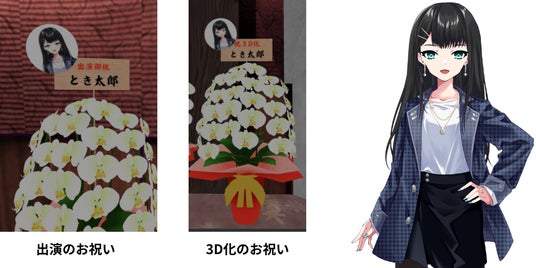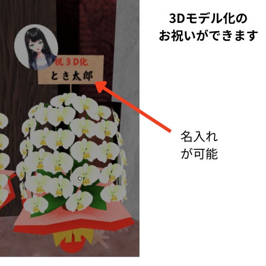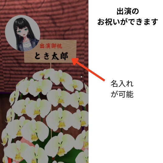 各タレントに向けたお花を用意しています。名前やニックネームを入れることができます。
