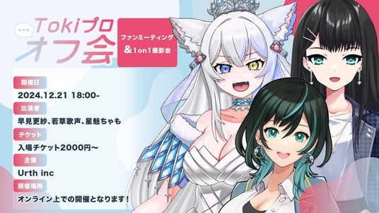 メタバースイベント『Tokiプロオフ会』がUrthのメタバースサービスmetatell上で、12月に開催!! Tokiプロダクション所属タレント「早見更紗」「若草歌声」「星魅ちゃも」が参加予定