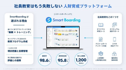 導入企業1200社!継続率98.6%(※1)!研修満足度95.8%(※2)!を実現する人財育成プラットフォーム Smart Boarding とは?