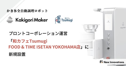 株式会社New Innovations(本社:東京都江東区、代表取締役CEO兼CTO:中尾 渓人、以下「New Innovations」)は、株式会社プロントコーポレーション(本社:東京都港区、代表取締役社長:杉山 和弘)が運営する「和カフェ Tsumugi FOOD & TIME ISETAN YOKOHAMA店」に、かき氷機と自動連携する全自動調理ロボット「Kakigori Maker」を新たに導入したことをお知らせいたします。