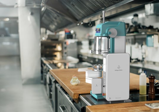「Kakigori Maker」はかき氷機との自動連動によって、調理の手間とコストを圧倒的に削減する全自動調理ロボットです。氷の盛り加減をビジョンシステムを通じてリアルタイムに制御し、気温・湿度・氷の密度などに左右されることなく、一定の盛り具合を実現します。