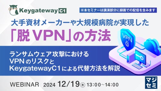 本セミナーでは、ゼロトラスト接続サービス「KeygatewayC1」を活用して実際に「脱VPN」を実現している事例をご紹介します。