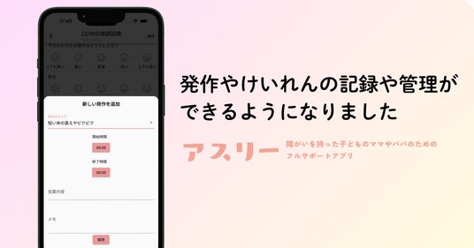 障がい児を育てる家庭のリアルな課題に応えるアプリ「Asuly(アスリー)」が、発作記録機能を新たにリリースしました。