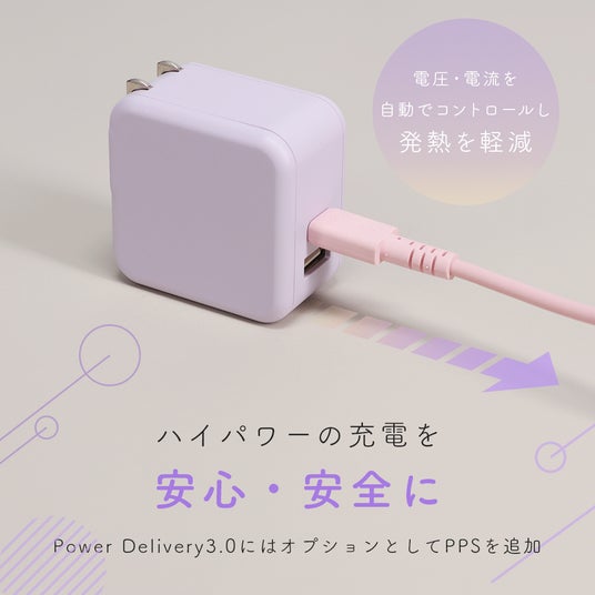 ※PPSとは電圧や電流を自動でコントロールし、こまかなステップで充電することで発熱によるロスも最小限に押さえることが出来る機能のこと。