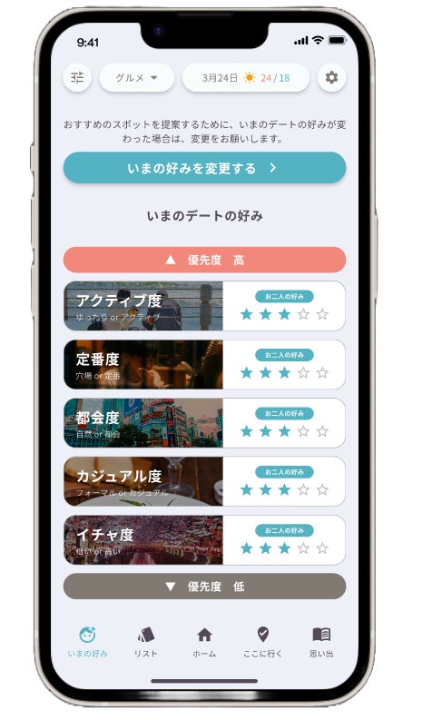 デート計画をもっと楽しく!もっと簡単に!ふたりに合ったデートプランをAIが提案し計画に伴う煩わしさを解消します。