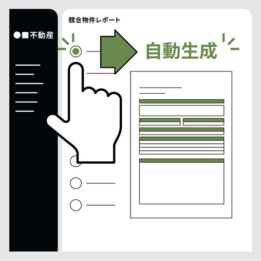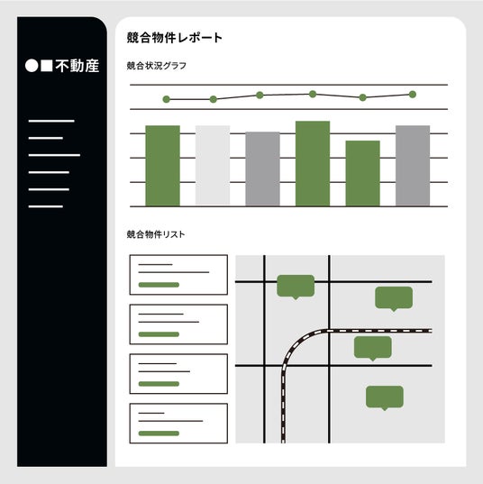 競合物件レポート競合物件の売り出し状況をグラフやマップで直感的に可視化します。独自のテクノロジーによって手作業による集計業務を発生させることなく、マーケット情報を更新できます。