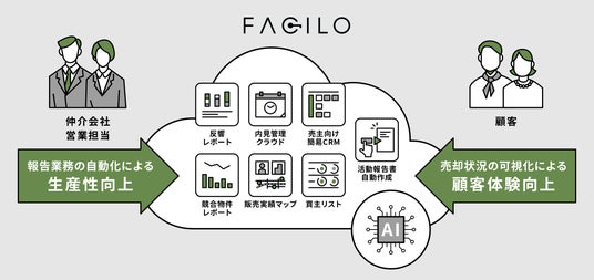 株式会社Facilo(本社:東京都港区、代表取締役:市川 紘)は、新プロダクト『Facilo物件売却クラウド』をリリースしました。従来の買い仲介向けプロダクトに加え、売り仲介向けプロダクトをラインナップに加えることで、取引の関係者が共通してアクセスできるプラットフォームを構築します。これにより、不動産売買におけるコミュニケーションの一元化と可視化をさらに促進し、これまでにないスムーズな住み替えの顧客体験を実現します。