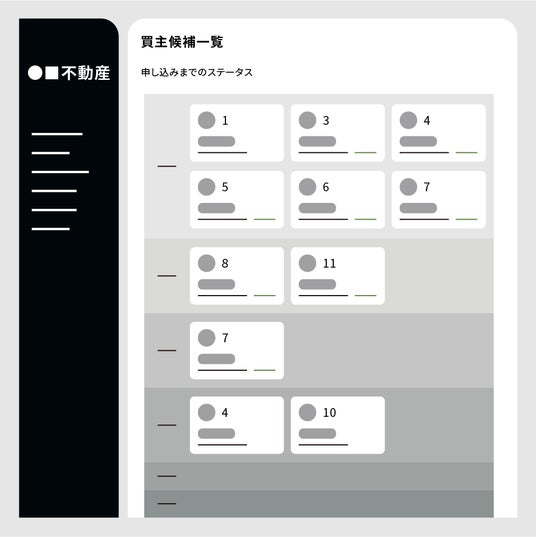 売主向け簡易CRM売り出し中の物件を検討している買主候補が、どのステータスにどれだけいるのかを一目で把握できます。クラウド上のログをもとにステータスが自動で更新されるため、面倒な手作業での更新業務を最小限に抑えることが可能です。