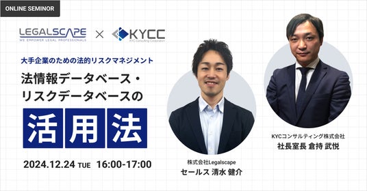 【12月24日(火)開催】Legalscape(リーガルスケープ)とKYCコンサルティングが「大手企業の法的リスクマネジメント」をテーマにした無料セミナーを開催