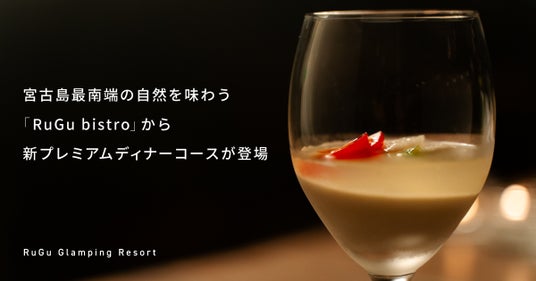 株式会社BLANC(本社所在地:東京都港区、代表取締役:山中 拓也)は、「RuGu Glamping Resort」(ルーグー グランピング リゾート、沖縄県宮古島市)内の「RuGu bistro(ルーグー ビストロ)」にて、新しいプレミアムディナーコースを2024年12月12日よりスタートします。アペリティフからデザートまで、一皿ごとに宮古島の食材を用いた特別なメニューです。長崎浜至近で大自然を感じる特別なロケーションで、地元の旬の味ををご堪能ください。