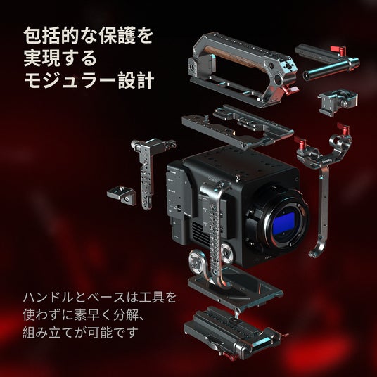 Sony BURANO用ケージキットは、ソニーの新しいデジタルシネマカメラ「BURANO」のために設計されたケージキットです。包括的な保護を実現するモジュラー設計を採用し、カメラを効果的に保護しながら、アクセサリーの取り付けも簡単に行えます。ハンドルとベースは工具を使わずに素早く分解・組み立てが可能です。