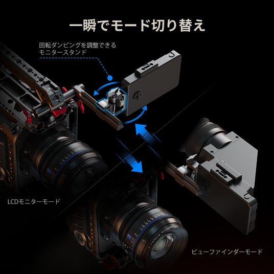 HawkLockクイックリリースシステムにより、LCDモニターモードとビューファインダーモードを素早く切り替えることができます。