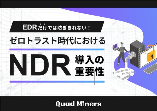 株式会社クワッドマイナージャパン(本社:東京都千代田区、代表取締役社長:蘇 明燮、以下当社)は、近年大注目されているセキュリティ戦略である「ゼロトラストモデル」を実現するために不可欠なNDRの重要性を詳述したホワイトペーパー『EDRだけでは防ぎきれない!ゼロトラスト時代におけるNDR導入の重要性』を公開しました。