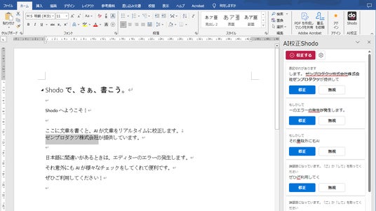 AI校正のShodo、Microsoft Wordに対応