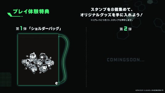 REDEEにてシンカリオンCW × HADOのコラボをご体験いただいた方には、オリジナルステッカーを、体験者全員にランダムで1人1枚プレゼントいたします。さらに、1プレイにつき1つ貯まるスタンプカードを8個押すことで限定のショルダーバッグもプレゼントいたします。