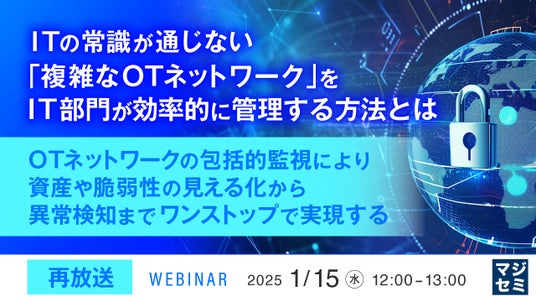 マジセミ株式会社は、大変好評をいただいた「【再放送】ITの常識が通じない「複雑なOTネットワーク」をIT部門が効率的に管理する方法とは」というテーマのウェビナーを再放送します。