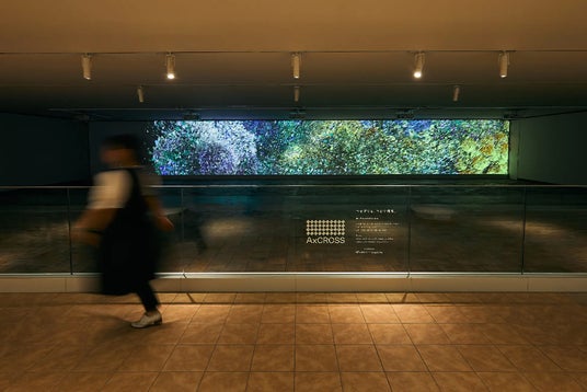 AxCROSSでは、デジタルアートの展示だけではなく、広告スペースとしての機能性をあわせ持っております。巨大なスクリーンでありつつ、絶え間なく人が往来し多くの接触が期待される場所であるため、多くの広告効果が期待されます。