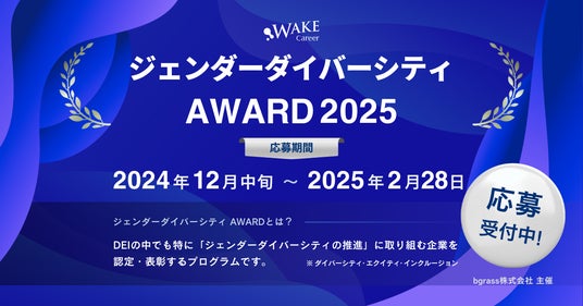bgrass株式会社(本社:東京都渋谷区 代表取締役:咸 多栄、以下「当社」)が運営する、女性IT/Webエンジニアのためのハイスキル転職サービス『WAKE Career(ウエイクキャリア)』は、『ジェンダーダイバーシティ AWARD 2025』を開催いたします。
