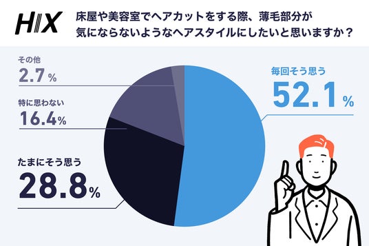 AGAセルフケアブランド「HIX(ヒックス)」(運営:株式会社エムボックス、本社:東京都豊島区、代表:金澤大介、以下:エムボックス)が運営するメディア「薄毛対策ラボ by AGA管理アプリHIX」は、HIXユーザーを対象に<薄毛男性のヘアカット>に関するアンケート調査を実施しました。