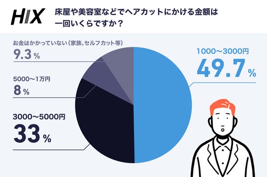 - ヘアカットにかける金額は二人に一人が3000円未満