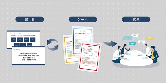 講義による『普遍的なコミュニケーションの型』と『目的に合わせたポイント』のインプットと、ビジネスゲームによるアウトプットを繰り返して、学びを深めていきます。