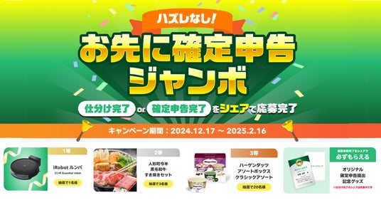 【お先に確定申告ジャンボ】早めに仕分け/確定申告を終えて豪華景品をゲット!スキマ確定申告アプリ「タックスナップ」、必ずもらえるプレゼントキャンペーン実施