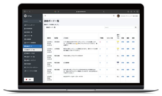 従業員同士の業務連絡をシンプルに管理する「連絡ボード」機能を搭載。シフト表やマニュアルなどのファイルを添付できるほか、スタンプやコメントで意思表示が可能です。業務連絡とプライベートなツールを分けることで、従業員のストレス軽減と職場での情報共有をスムーズにします。